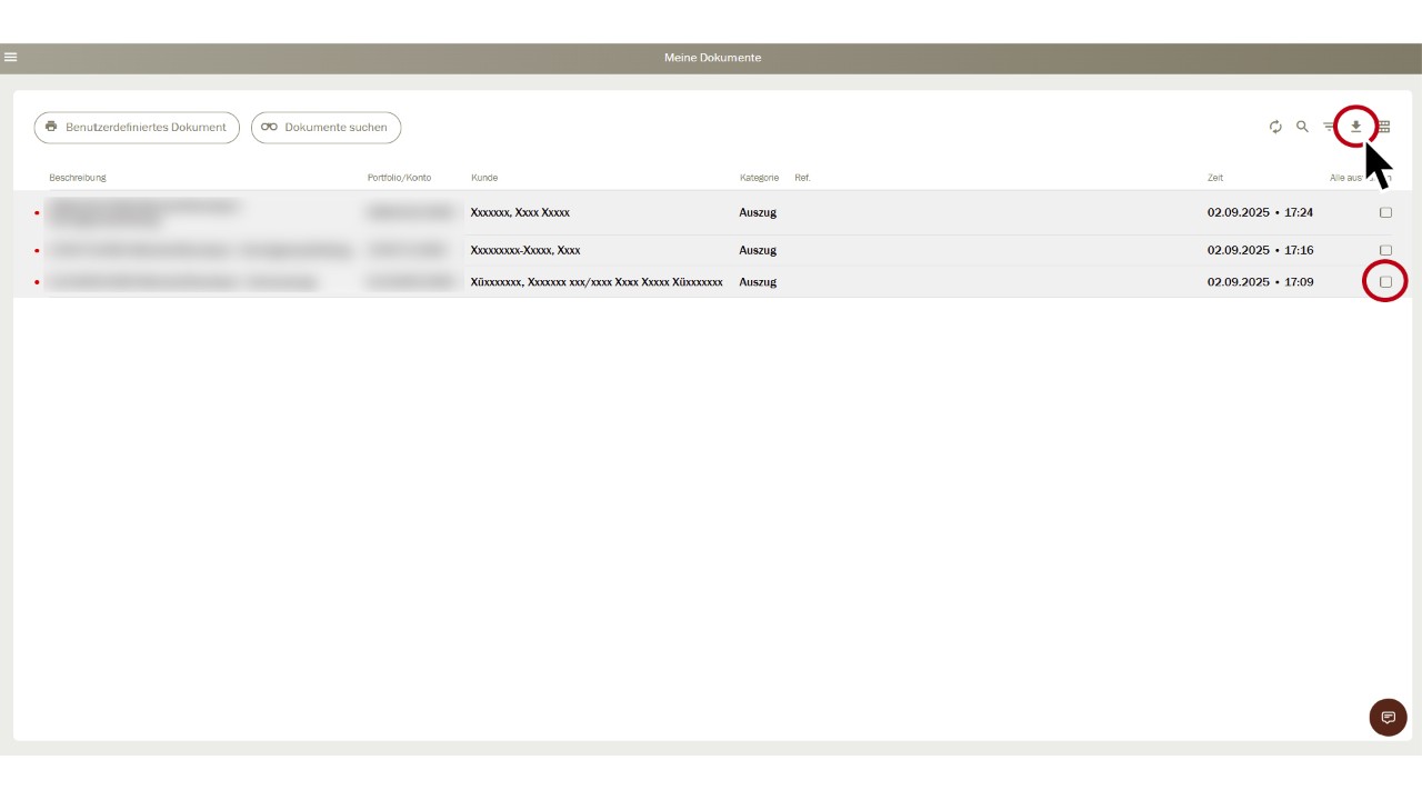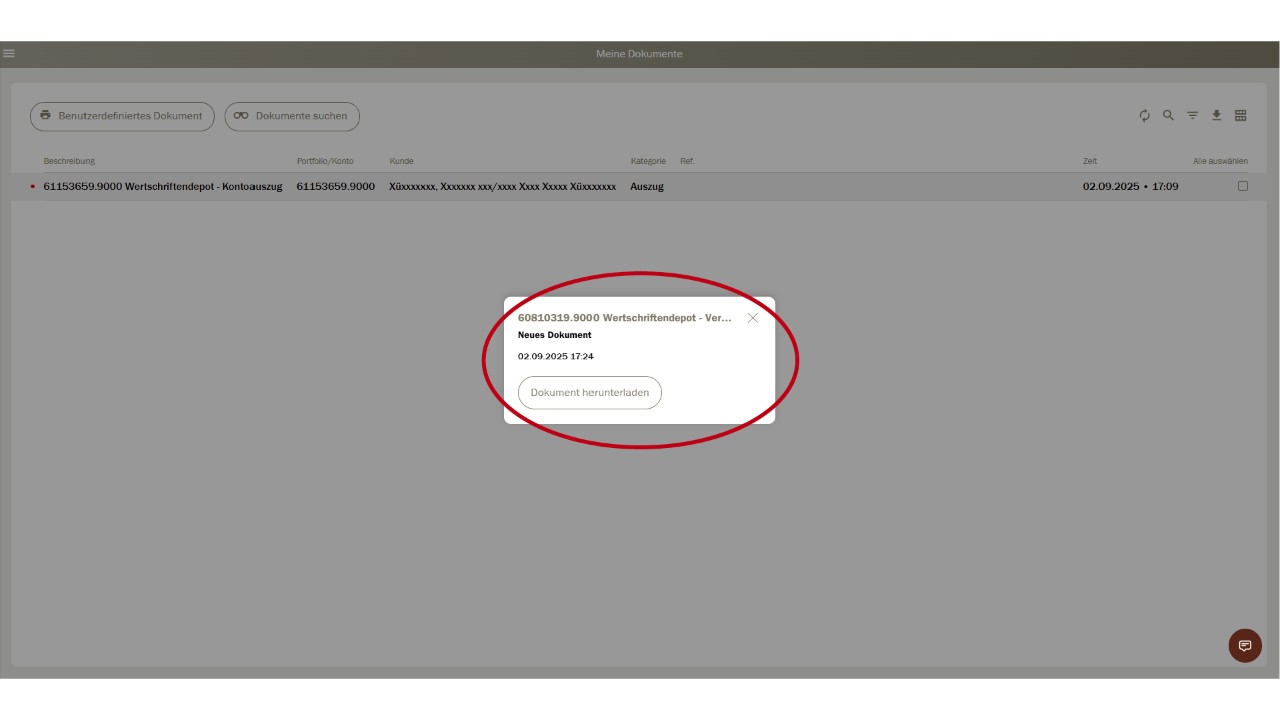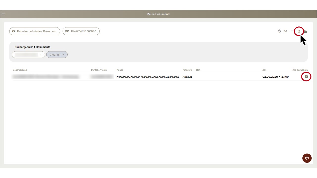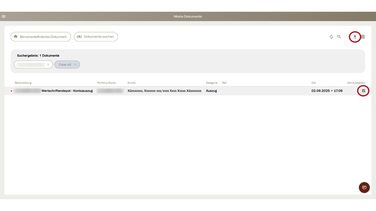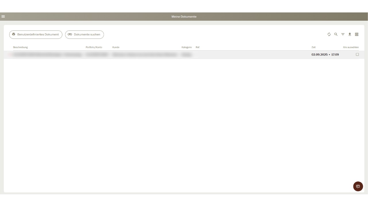 Sur cette page «Mes documents», les documents disponibles du client sélectionné sont maintenant à votre disposition en format PDF pour téléchargement.