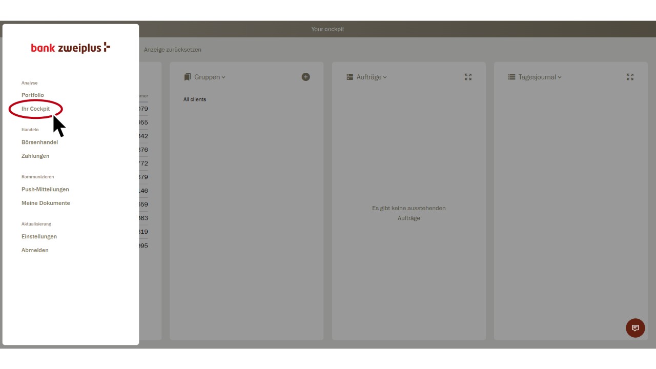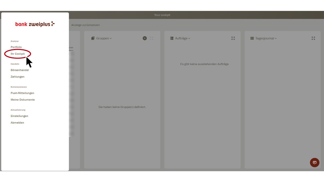 Sélectionnez «Votre cockpit» dans le menu principal.