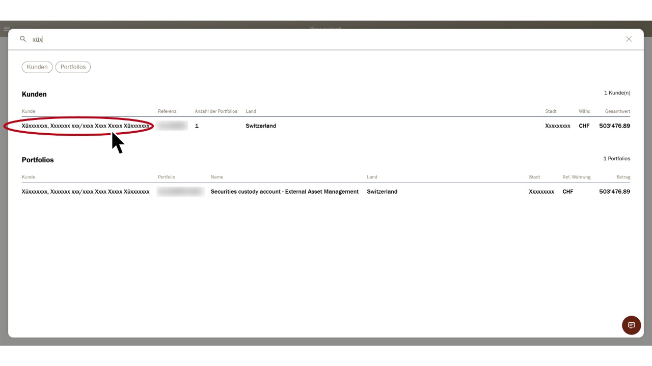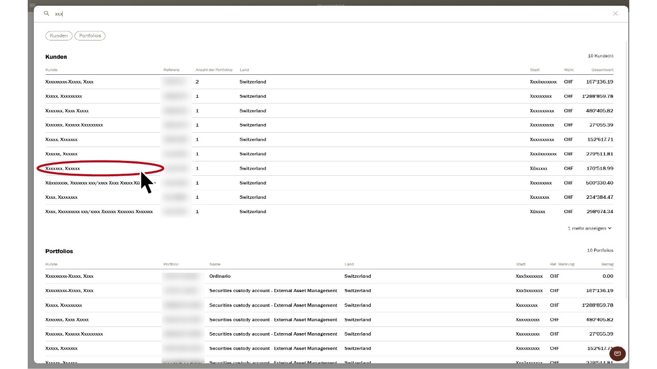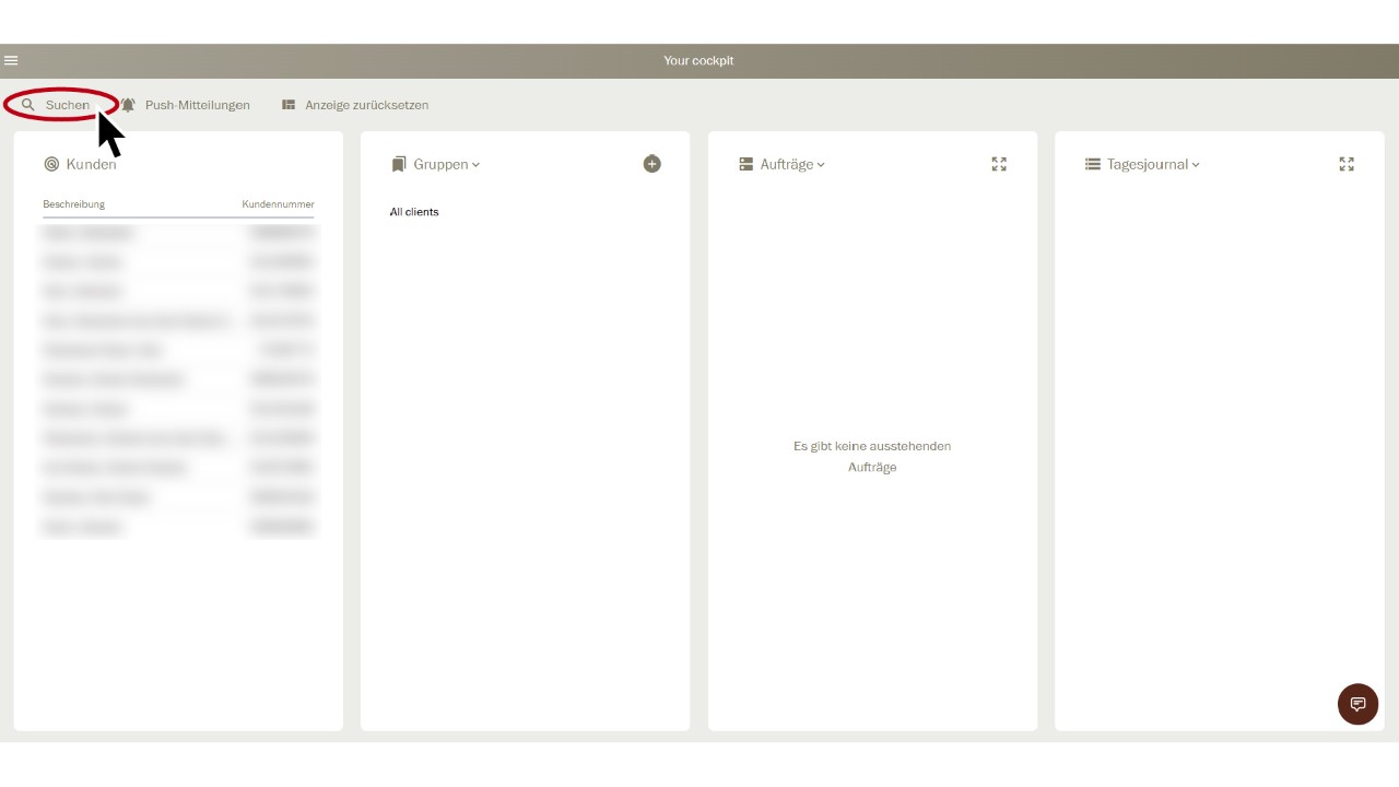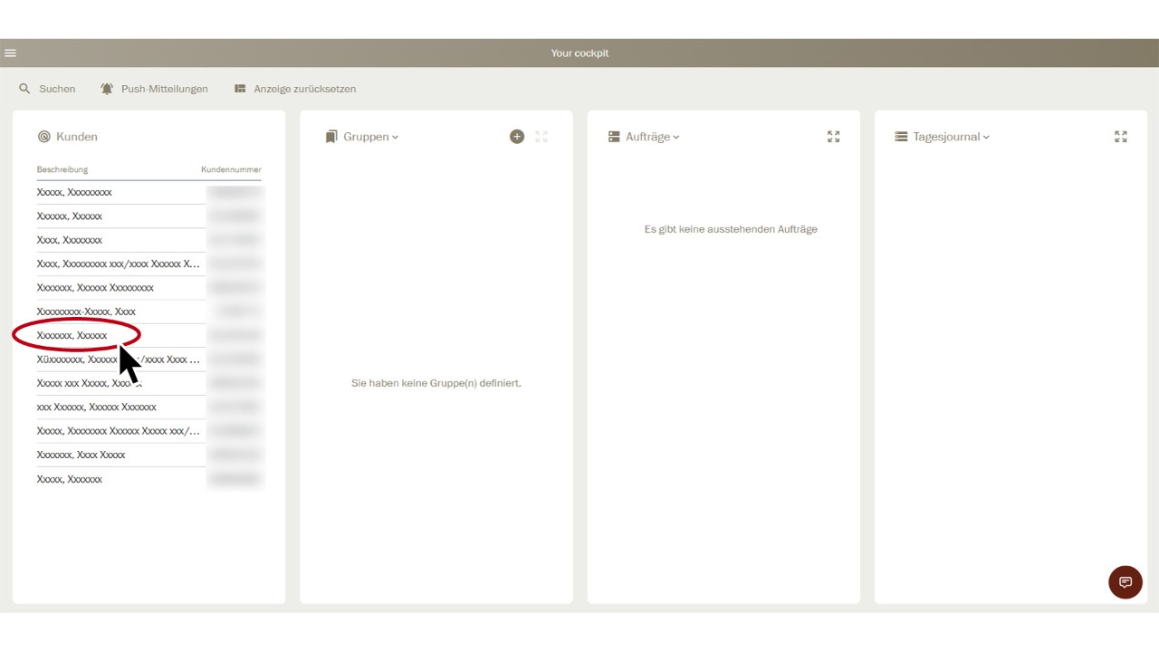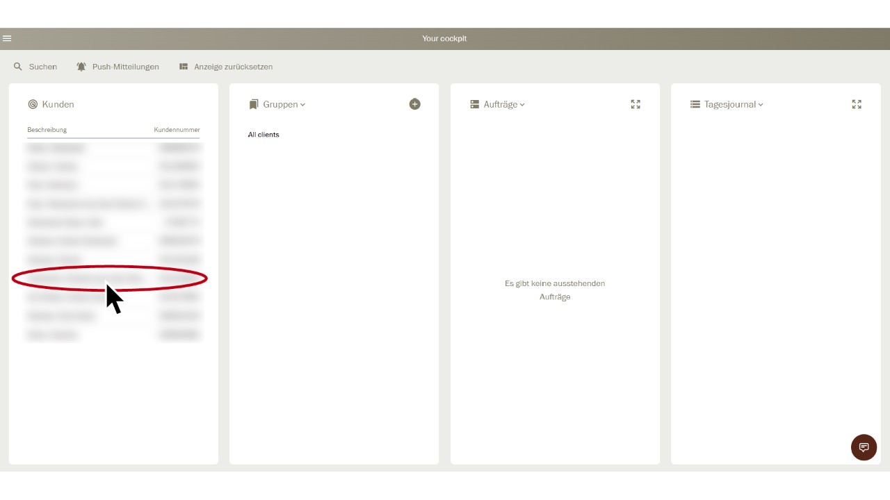 Sélectionnez le client correspondant dans le «Tableau de bord» d’un simple clic.