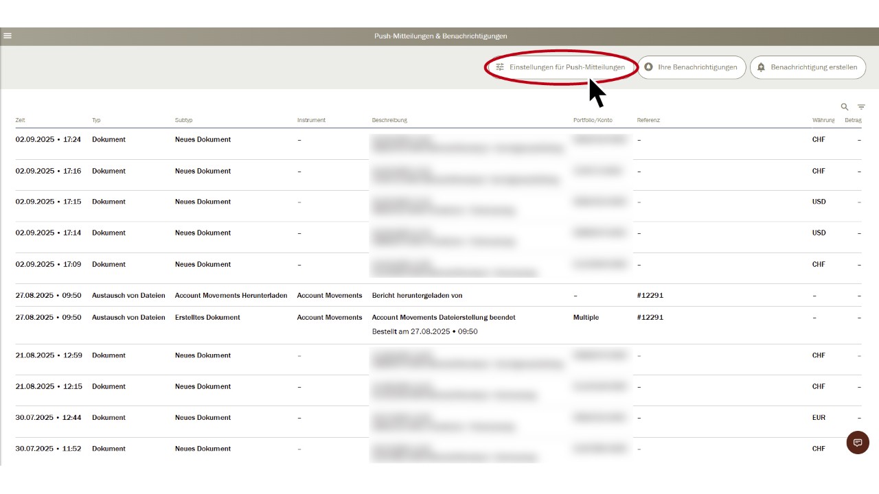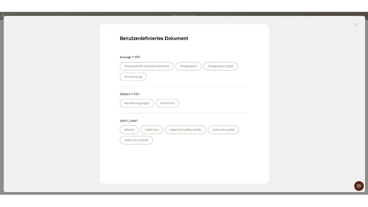 Sélectionnez le type souhaité, par exemple rapport d’investissement, relevé de compte, etc.