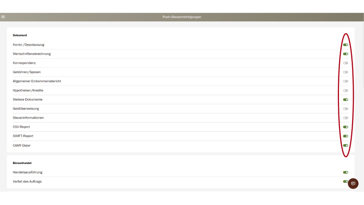 Les paramètres pour les notifications push peuvent facilement être modifiés dans le menu principal sous «Notifications push».