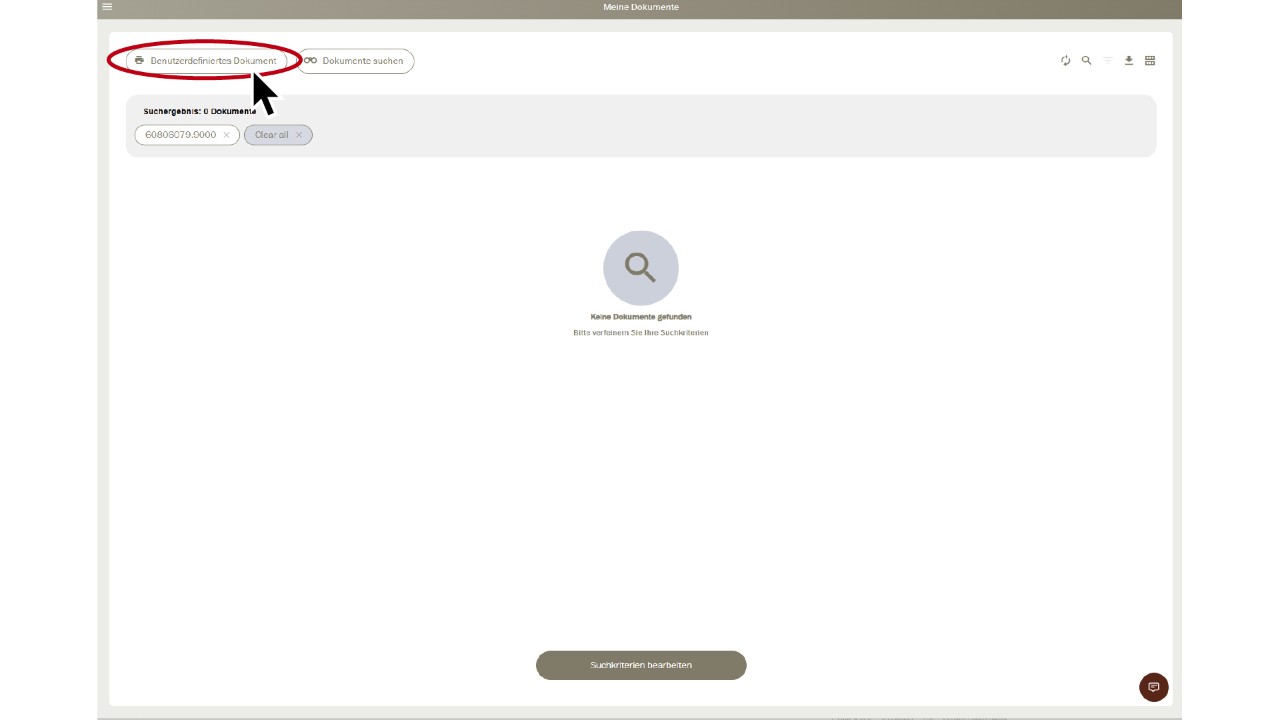 Vous voyez les documents disponibles du client. Sélectionnez «Document personnalisé» en haut à gauche.